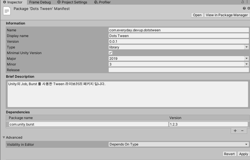 해당 게시글은 DotsTween CustomPackage를 만드는 과정을 설명한 글이다.