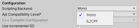하지만 iOS환경에서 JIT 를 사용할 때에 문자가 되기 때문에 IL2CPP만 사용이 가능하고, 성능적인 측면에서도 IL2CPP가 좋음