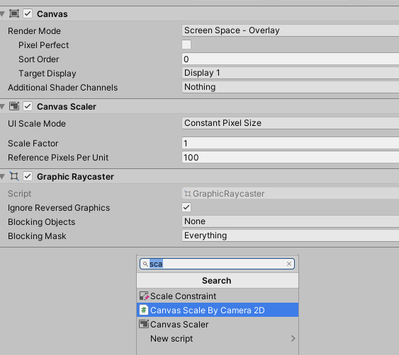 앞선 게시물에서 2D Camera를 설정하는 스크립트를 소개하였는데, 이어서 UGUI로 UI를 표시하기 위한 필수 컴포넌트인 Cavas를 설정하는 스크립트를 설명하고자 한다. 2D Camera는 다음의 링크를 참고 ht