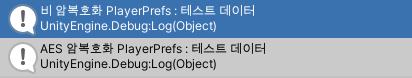 Debug.Log( "AES 암복호화 PlayerPrefs : " + FileUtil.GetPlayerPrefs( "testEncrypt", string.Empty, cryptoComponent.aesBase64Key, cryptoComponent.aesBase64IV ));