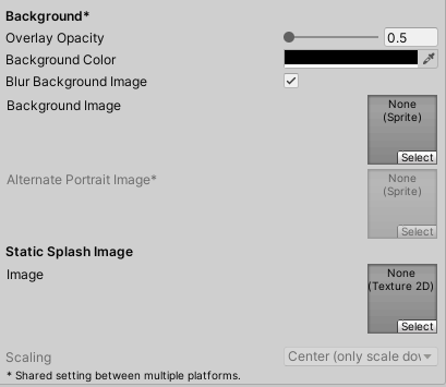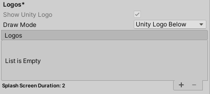 참고 자료 : https://docs.unity3d.com/kr/2019.3/Manual/class-PlayerSettingsSplashScreen.html