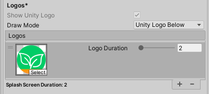 ▶ Draw Mode : 로고를 어떻게 보여줄지에 대해 설정, Unity Logo Below / All Sequential