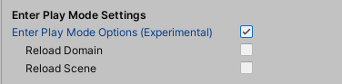 : 해당 옵션을 사용하면 도메인 리로드와 씬 리로드를 하지 않고 씬의 정보만 리셋하기 때문에 속도가 개선 됨