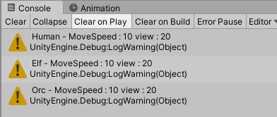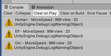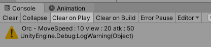 Debug.LogWarning( " Orc - MoveSpeed : " + stat.moveSpeed + " view : " + stat.view );