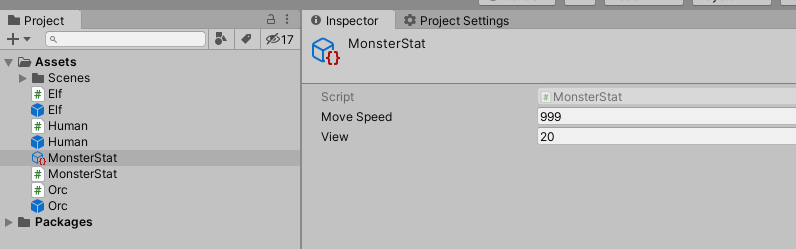 2. MonsterStat 이라는 ScriptableObject를 Menu를 통해 생성