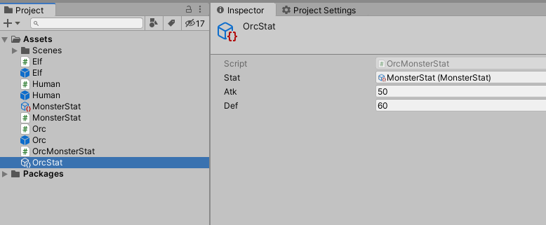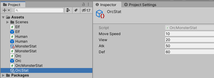 [CreateAssetMenu( fileName = "MonsterStat", menuName = "Scriptable Object Asset/Orc Stat" )]