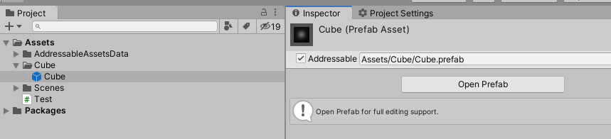 Addressables.InstantiateAsync( "Assets/Cube/Cube.prefab" );
