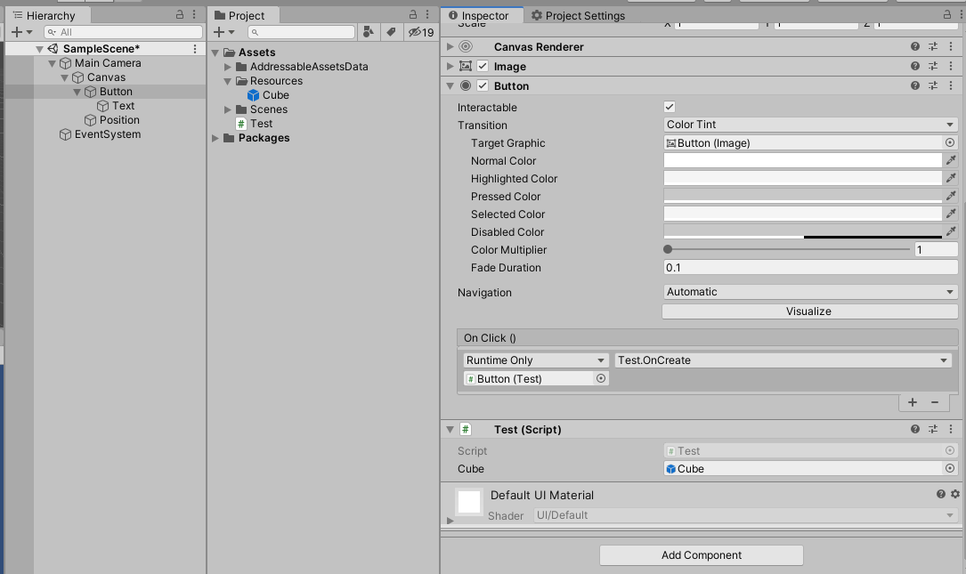 : 간단한 테스트를 위해 버튼을 누르면 Cube Object를 생성하는 코드를 작성