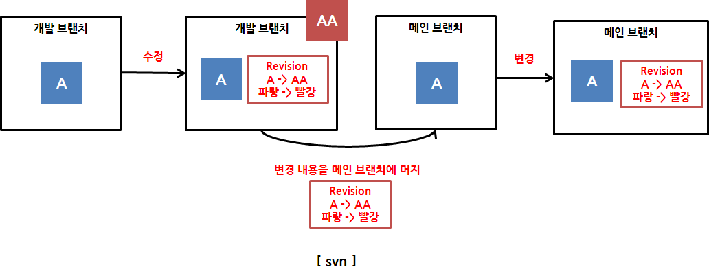 SVN으로도 위의 브랜치 관리 방식을 사용할 수 있고, 충분히 안정적인 서비스도 할 수 있다. 단지 GIT에 비해 시간이 걸릴 뿐이다.