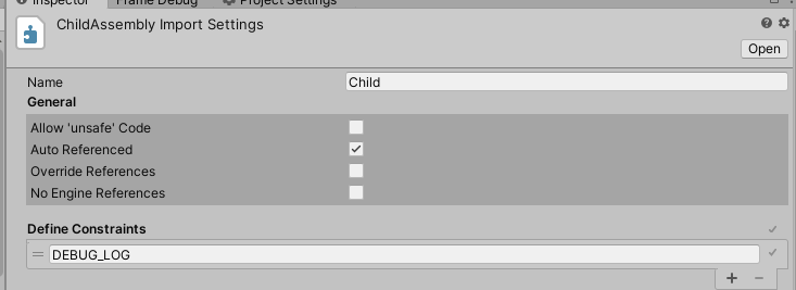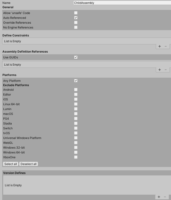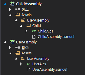 ※ ChildAssembly.asmdef의 Name을 Child로 하면, 어셈블리의 이름은 Child가 된다.