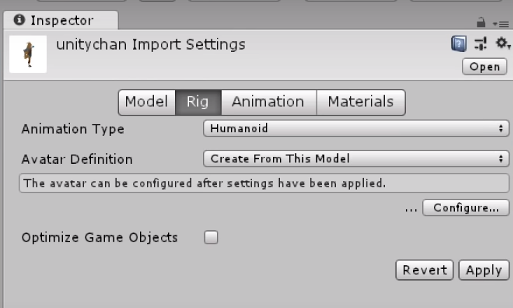▶ 캐릭터 모델과 같은 애니매이션이 있는 GameObject의 경우 "Optimize Game Obejcts" 를 체크 표시하면 Bone으로 표시되던 GameObejct를 없앨 수 있어 성능을 올릴 수 있음