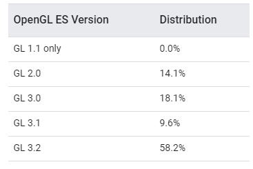Android OpenGL 3.2 이상, OpenGL 3.1 AEP(Android Extension Pack) - ( 갤럭시S5, LG G5 이후 단말기 )