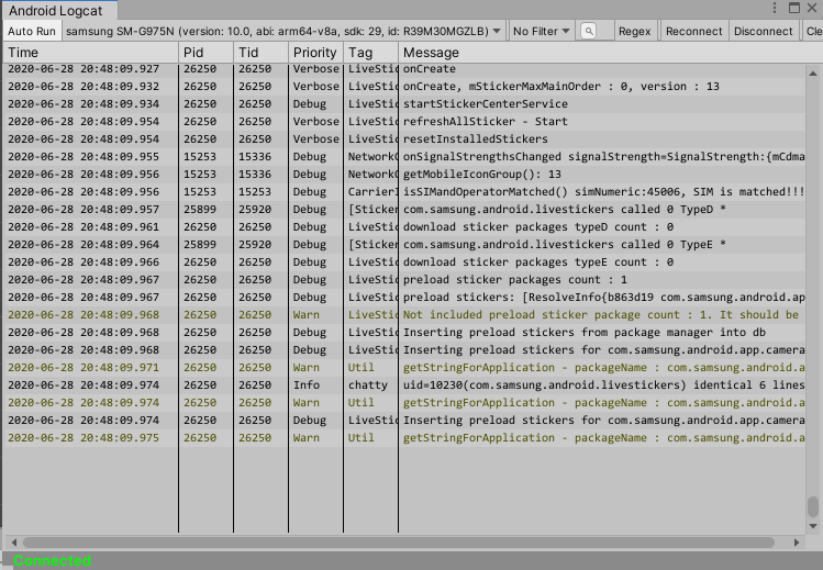 ※ Android Studio에서 로그를 보는 방법 외에 Unity에서도 패키지를 통해 로그를 볼 수 있게 되었다.